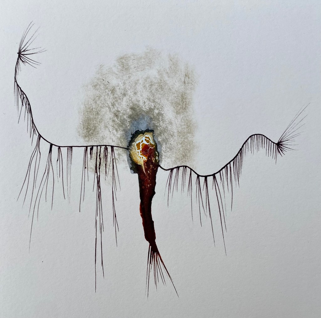. germinals (été 2024-avril2025), encre sur papier neutre, 25×25 cm. série.