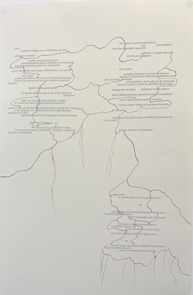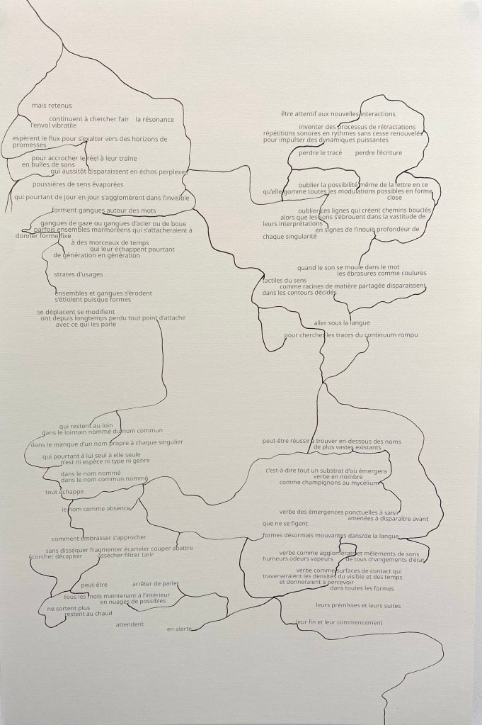 . la distance, enracinée. rehauts sur tirages numériques du poème la distance, 15 exemplaires originaux, 30×40 cm