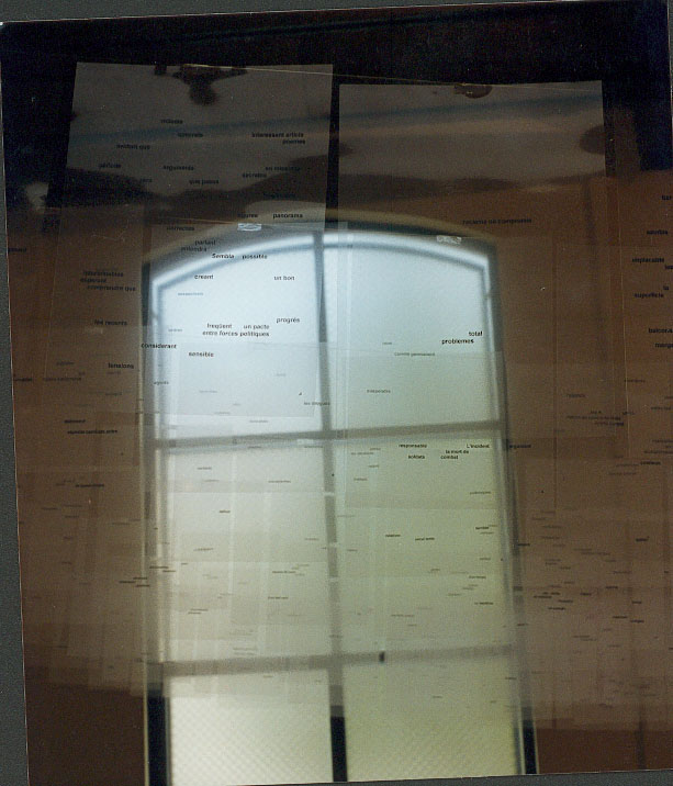 acétates transparents imprimés, nylon, journaux, livre, pièce sonore