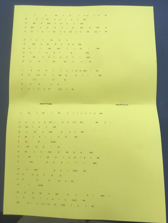 glossolalie, proto-strate #1, in « Du périmètre scénique en art : re/penser la skéné », EPCC+ESBAMA (Ecole supérieure des Beaux-Arts de Montpellier Agglomération, 2013