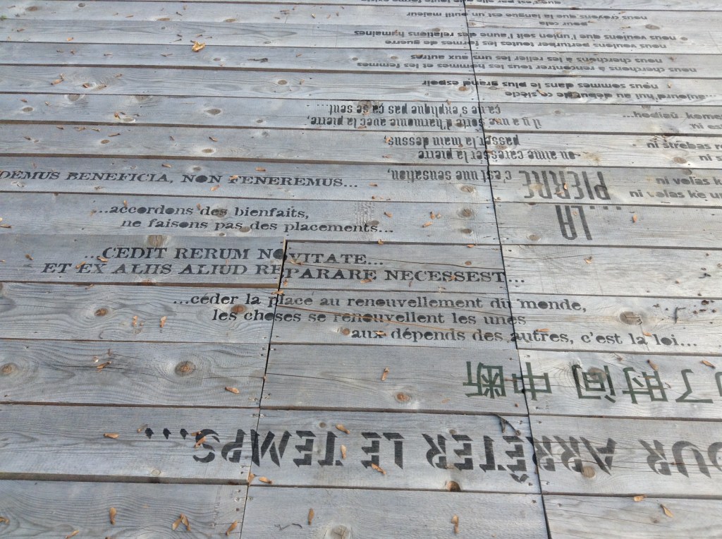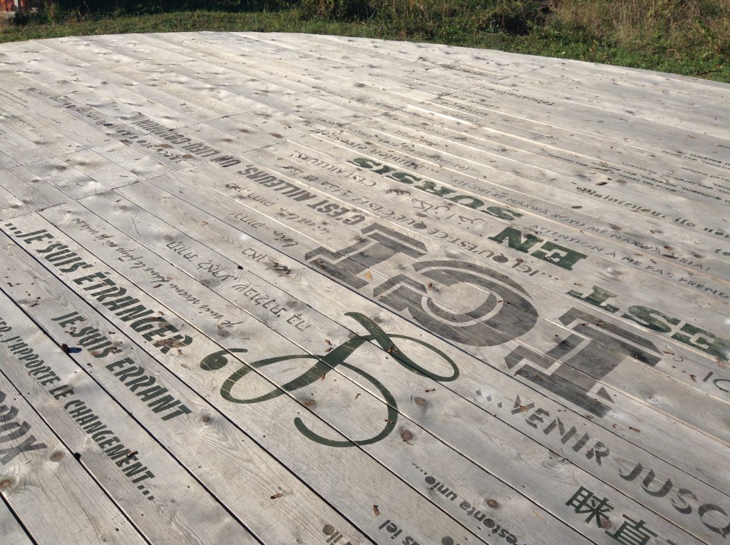 . sur la piste, création pour la manifestation paysagère : « Genève, Villes & Champs », en collaboration avec Eric Watt et Philippe Bretelle, Genève, 2014